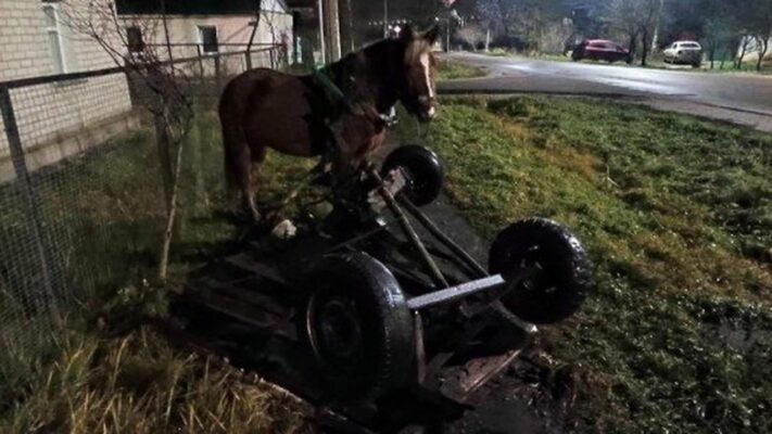 «Лошадь, запряжённая в повозку, не пострадала», — сообщили в ведомстве.
