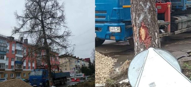 Под вырубку попали лиственницы, хвойные деревья, которые в среднем живут от 300 до 400 лет. Деревья уничтожали не из-за жалоб горожан на аварийность, а в ходе запланированных дорожных работ.