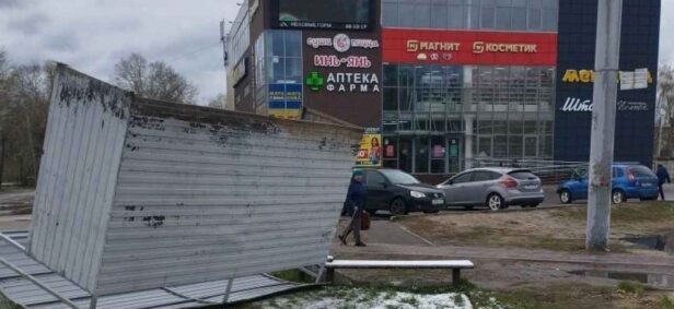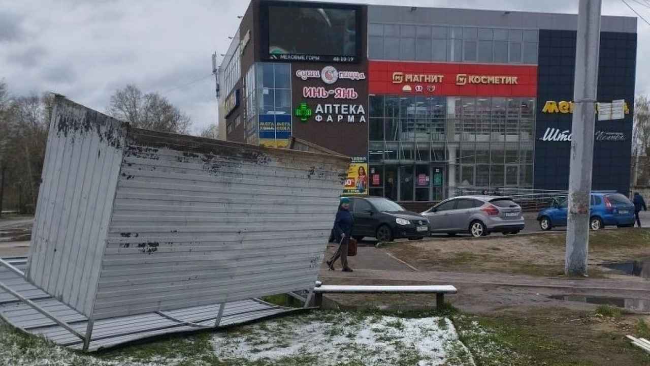 Не выдержал натиска: остановку в Орле вырвало ветром у депо